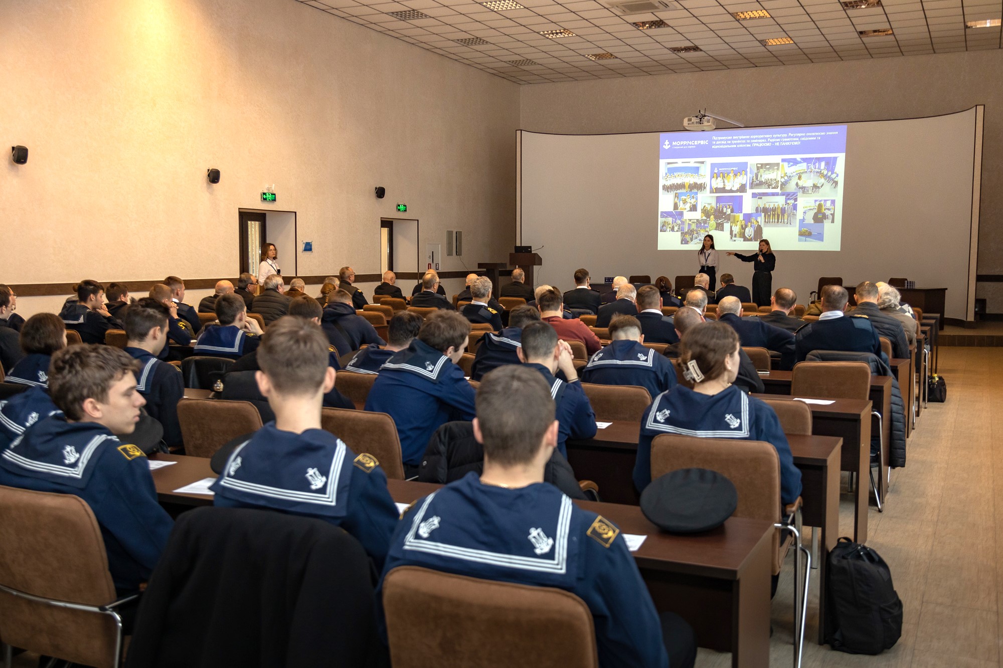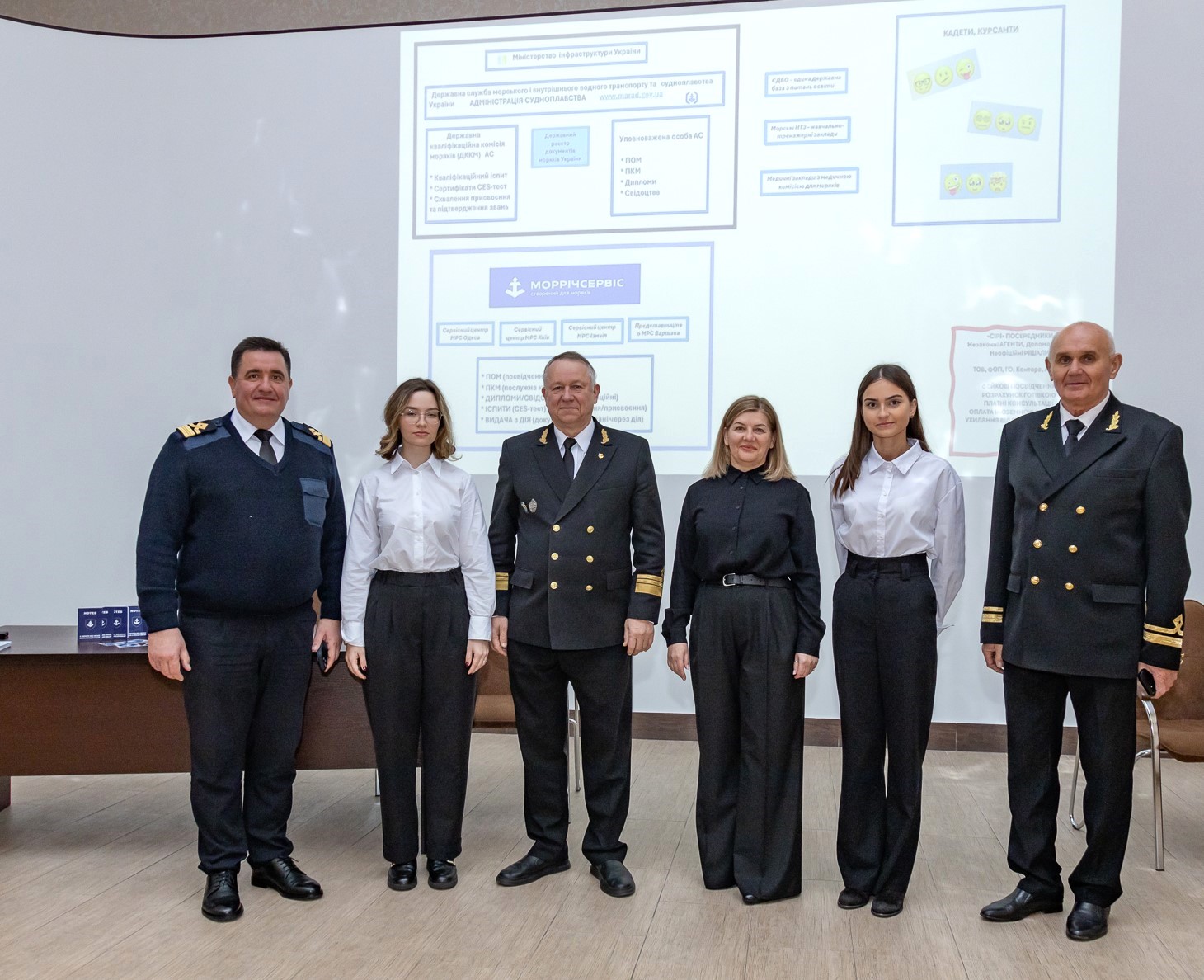 Минулого тижня працівники підприємства Моррічервіс відвідали Національний університет «Одеська Морська Академія» на запрошення керівництва закладу. На зустрічі в стінах університету на вулиці Дідріхсона зібралися кадети та викладацький склад університету. Мета зустрічі – поділитися професійним досвідом МРС та ознайомити майбутніх моряків з правилами оформлення кваліфікаційних документів, які їм будуть необхідні в подальшому для роботи.